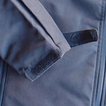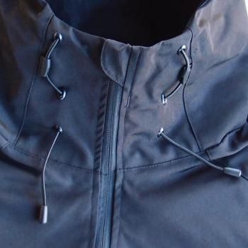 ラフテールオリジナルプリントシェルパーカ、防風性と撥水性を備えた素材を使用しています。ジップを上げると首まで防風できます。