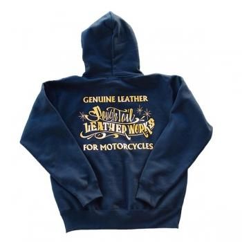 ラフテールオリジナルプリント15.6oz 極厚ジップパーカ。カラーは、本体ブラック、イエローのロゴプリント。