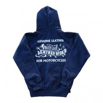 ラフテールオリジナルプリント15.6oz 極厚ジップパーカ。カラーは、本体ネイビー、ホワイトのロゴプリント。